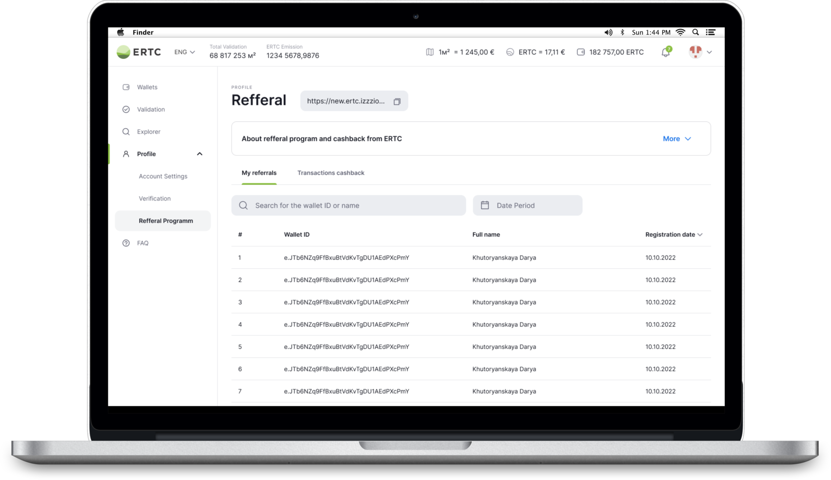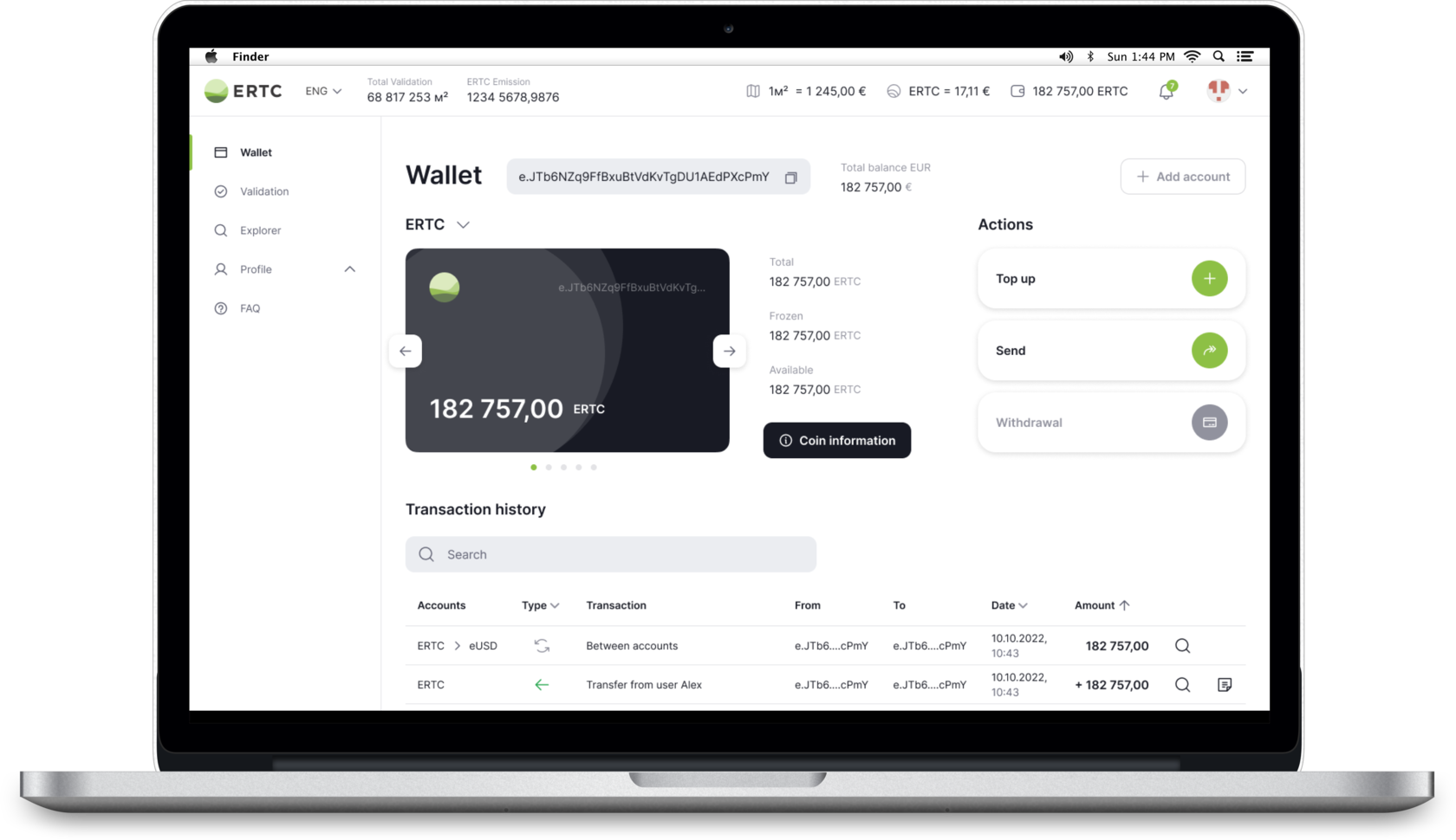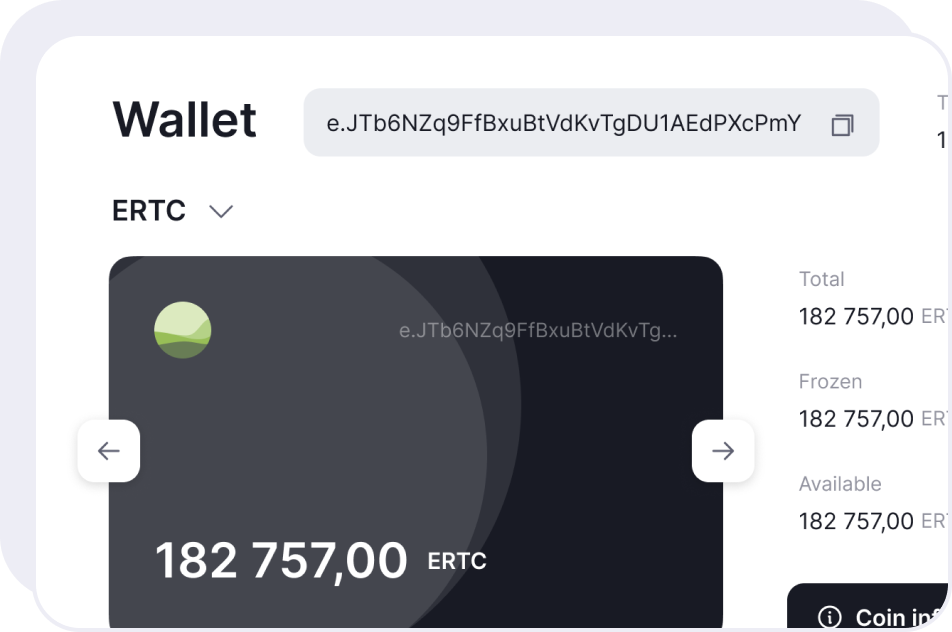 ERTC tokens movements are tracked from the date of issue to the last transaction, keeping the history in the ERTC blockchain.