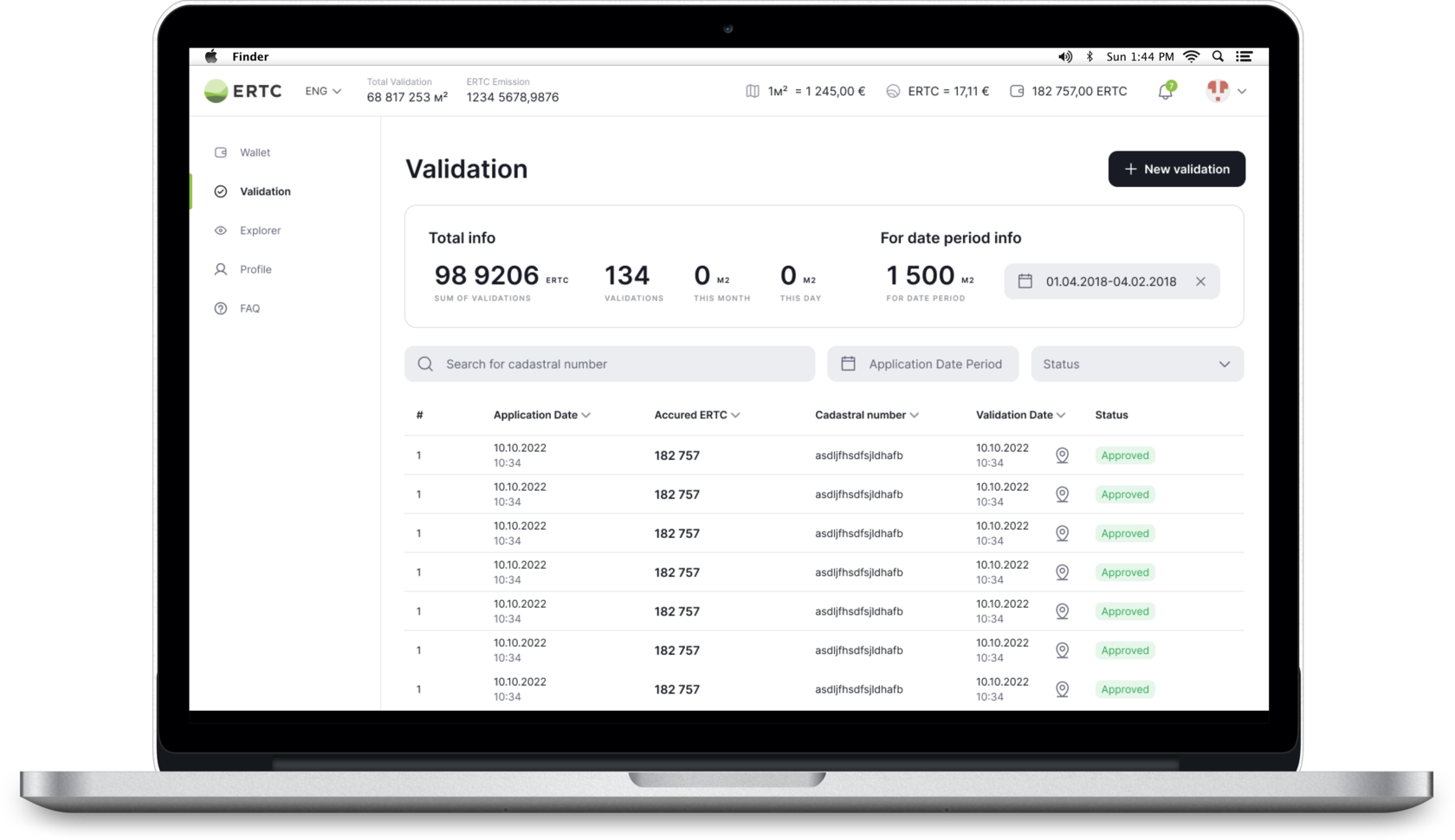 Each ERTC Token is an NFT that contains unique information about a square meter of land by the means of which the token was issued: